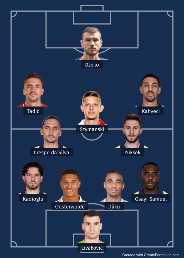 Fenerbahçe hücumda Dzeko’nun mobilitesi, Tadic’in sırtı dönük oyunları Szymanski’nin Sürpriz koşuları ve şutları, İrfan Can’ın fiziksel üstünlüğü ve zeki oyunu ile ligin en önemli hücum takımı.